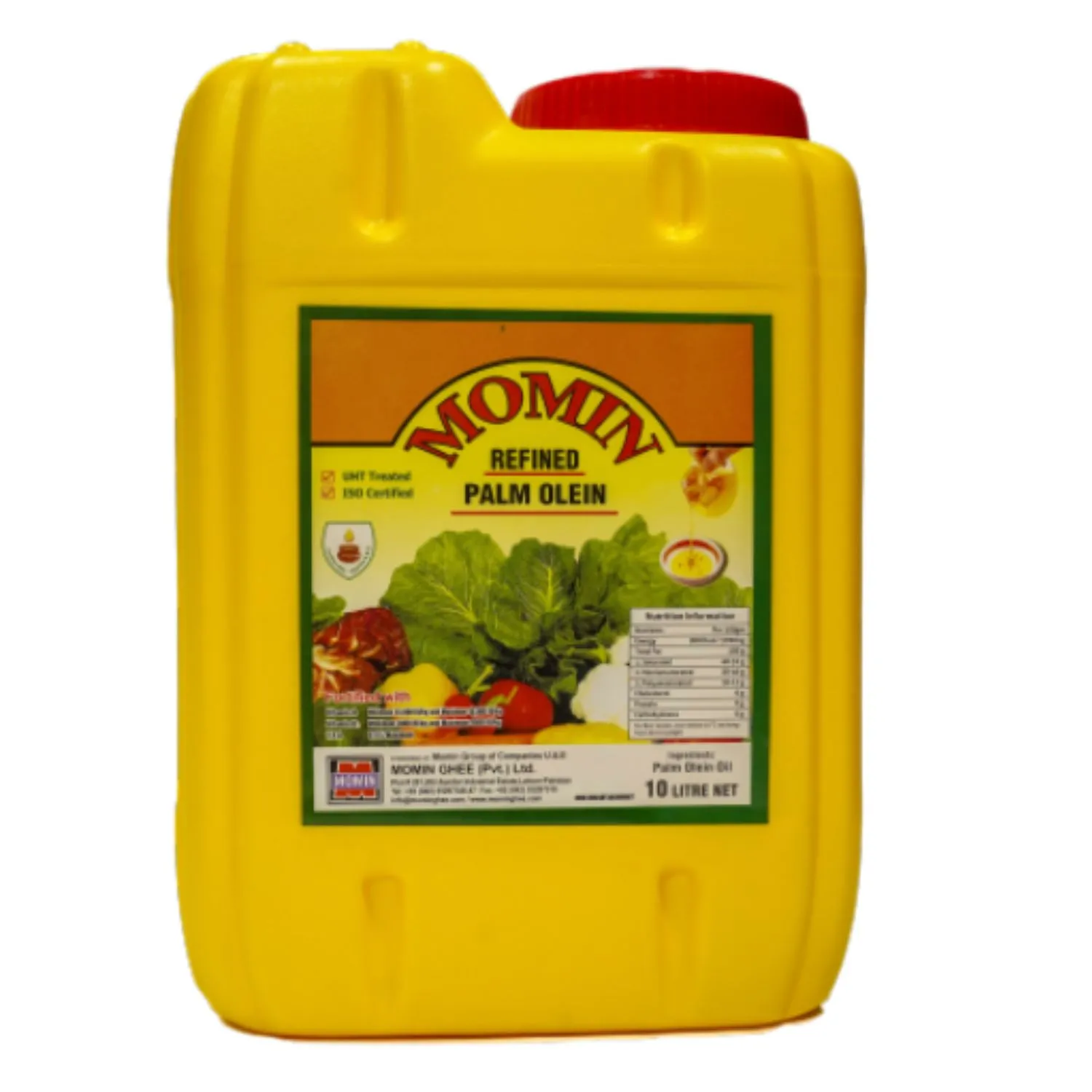 The 10-liter jerry can packaging ensures easy storage and handling, making it a perfect choice for households, restaurants, and catering businesses. With its long shelf life and trans fat-free composition, Momin Refined Palm Olein promotes healthier and efficient cooking.